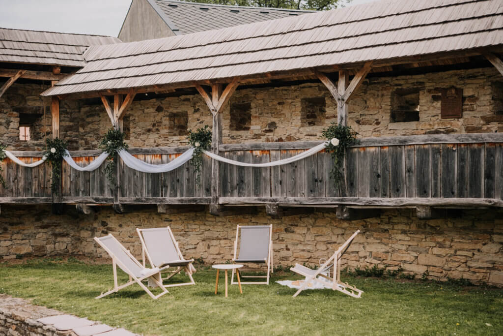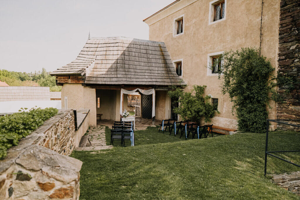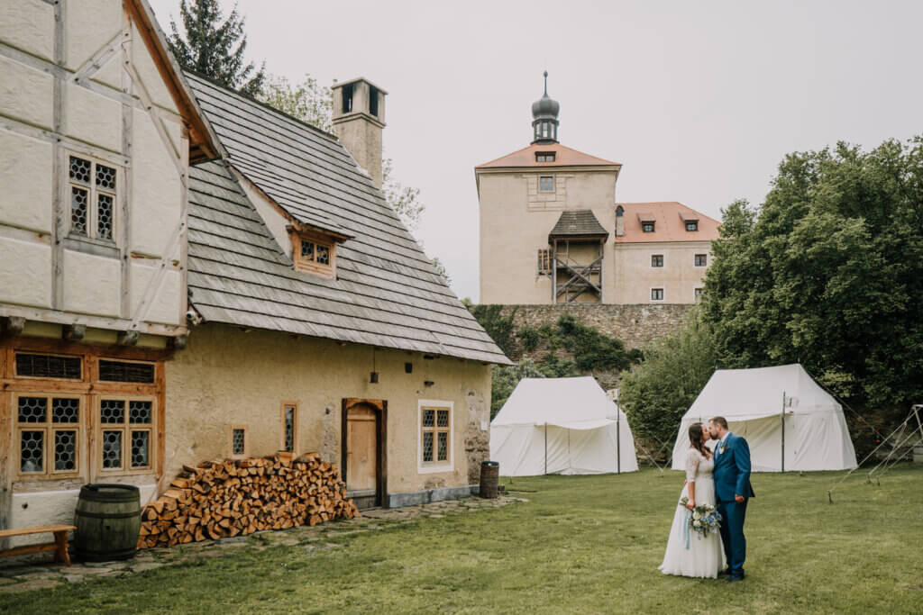 Obřad ve středověké tvrzi, v zahradách glamour kempu nebo na břehu rybníka. Svatební hostina ve středověké krčmě nebo na zahradě. Ubytovaní ve stylových stanech nebo v Apartmánech ve starém pivovaru.
